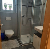 Salle de bain avec douche et WC
